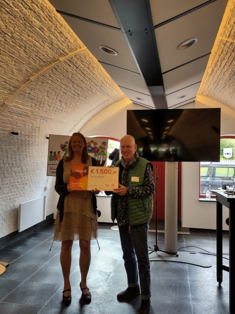 Geen appeltje van oranje gewonnen op de pitchdag 8 juni 2024, maar vrijwilliger Farid (rechts op de foto) en geestelijk verzorger Suzette gingen toch met een welkome financiële ondersteuning weer naar huis.